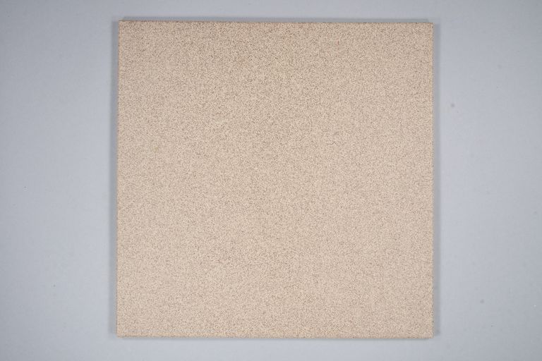 Piastrella in grès porcellanato priva di rivestimento vetroso. L'impasto atomizzato di più colori determina un effetto granito a "tutta massa" con puntinatura marrone in pasta marrone/rosa.