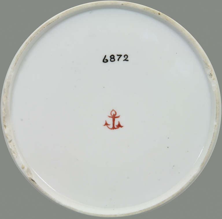 La decorazione di ispirazione orientale Imari con i tipici fiori "indiani", si può ricollegare al decoro definito "blò e rosso" o "del Giapon" negli inventari di fabbrica del 1783 (ASVe, Inquisitorato alle Arti, b.98, fasc. Majoliche, Porcellane, e Terraglie Fabbrica di Venezia, fasc. Terminazioni 1781-1785, pp. div.).