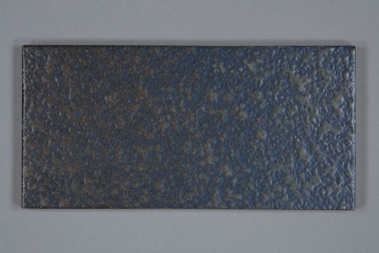 Piastrella smaltata per gocciolatura con rivestimento di colore blu e fiammatura più scura laterale.