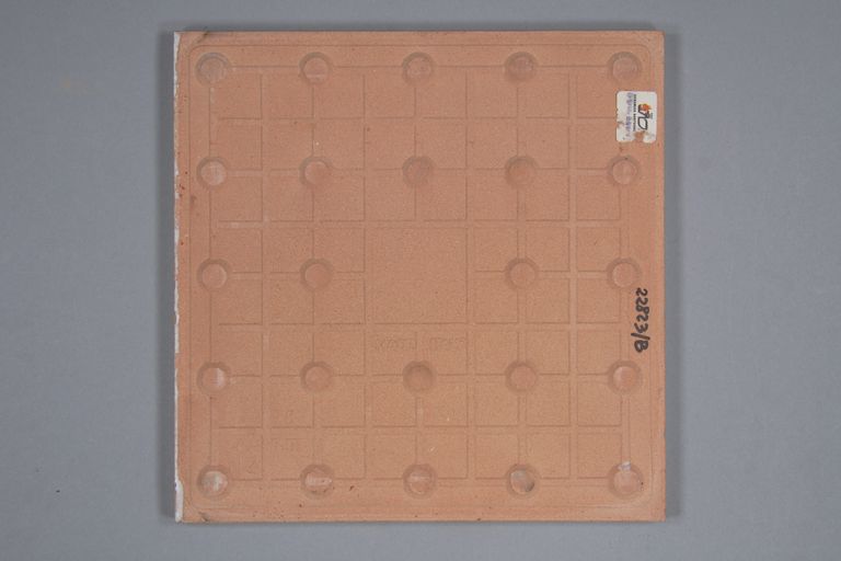 b: "Grill Bruno 1" piastrella decorata con fasce marroni lungo i bordi;