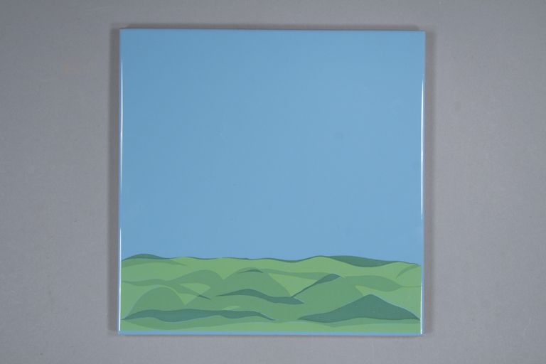 b: "8 Crociera" 1 piastrella decorata con il disegno di prati disposti su una estremità della superficie in 3 tonalità di verde.