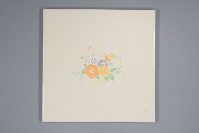 b: "Cipro 2" 1 piastrella decorata con al centro fiori e foglie.