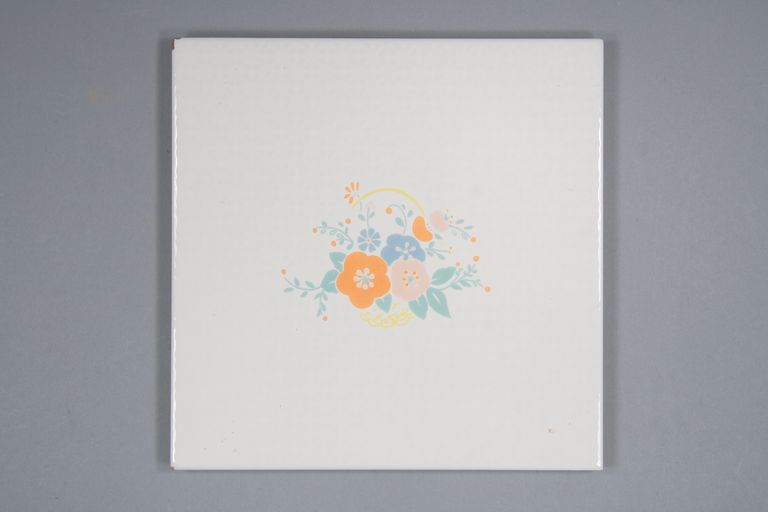 b: "Rodi 2" 1 piastrella decorata al centro con fiori e foglie, con due angoli "jolly" a 45°;