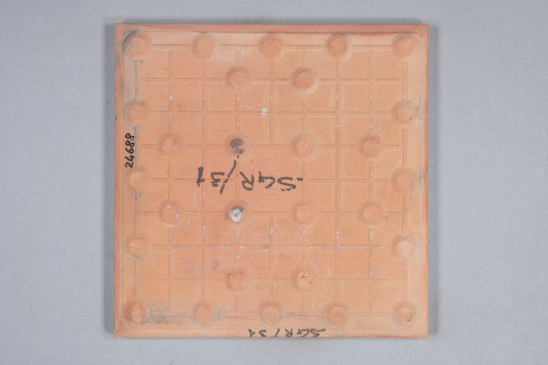 Nel retro, al centro, è presente un cerchio con inscritto "SEMI/ GRES" e il simbolo dell’azienda Iris, al di sopra sono posti dei numeri e sotto "MADE IN ITALY". A pennarello nero "SGR/ 31".