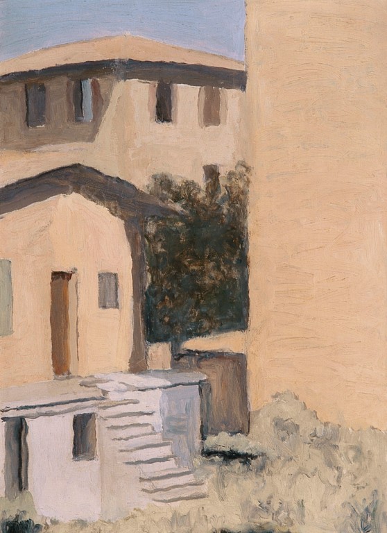 Sono per lo più del 1954 gli scorci del giardino interno di via Fondazza, colti dall'artista attraverso la grande finestra della sua camera-studio. (…) Fra tutti questi soltanto l'ultima tela è datata e quindi si può considerare il gruppo di dipinti nel suo complesso, ben sapendo che il limite cronologico della loro realizzazione si può fissare a quel 1959 in cui Morandi si trova davanti a una luce radicalmente mutata, e peggiorata, a causa di una nuova costruzione che gli precludeva la vista dei giardini e degli spazi comunicanti fino ai viali di circonvallazione. E' la perdita della sua luce e della sua aria a convincerlo a far costruire a Grizzana la semplicissima casa-cubo bianca, senza alcun ornamento, ove nelle ultime quattro estati egli dipingerà alcuni fra i più straordinari capolavori della sua stagione estrema. (Marilena Pasquali)