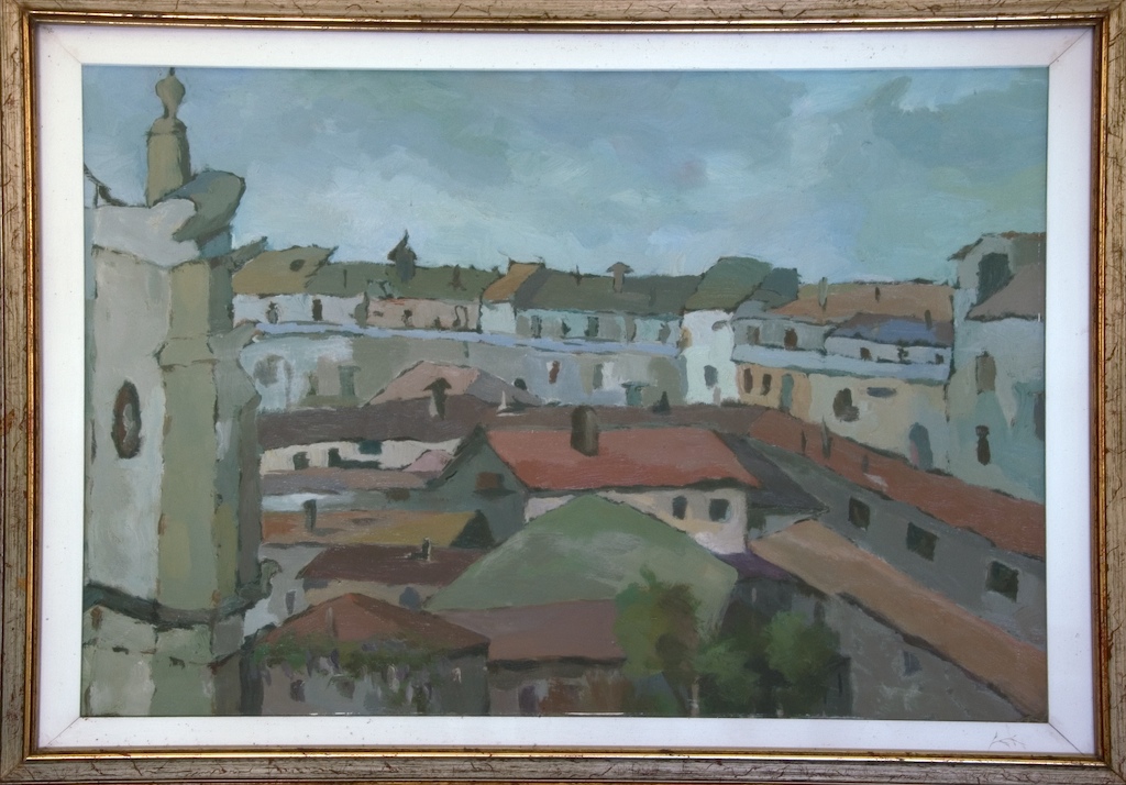 porzione superiore di edifici stagliati contro il cielo azzurro con qualche nuvola
