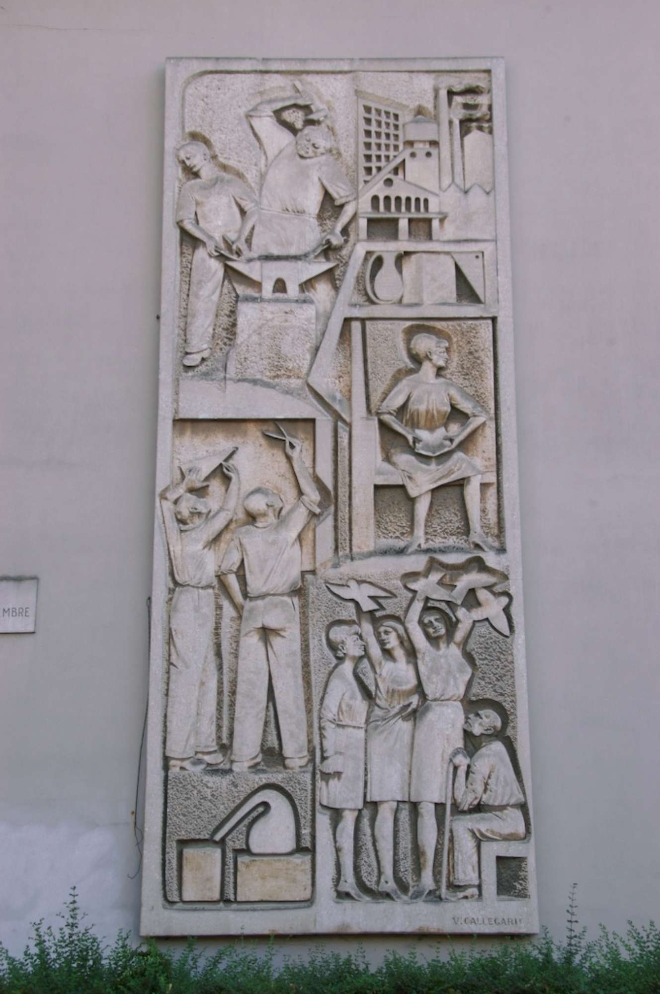opera densa di soggetti in sviluppo verticale: quattro colombe, un'insegnante di lettere, un complesso industriale e un fabbro. Il tema offre una sintesi visiva delle potenzialità didattiche dell' Istituto (l'apprendimento tecnico, la capacità di inserirsi nel mondo del lavoro, la cultura, i valori civili)