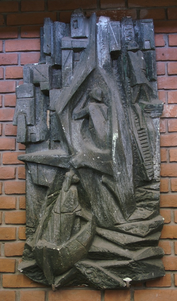 "Il lavoro e l'abnegazione del vigile del fuoco sono stati rappresentati in diverse fasi del suo intervento: le figure laterali indicano il pericolo che il vigile incontra lottando contro le forze della natura: l'acqua e il fuoco. La figura centrale sintetizza in un simbolo il sacrificio a cui s'immola il milite per l'ideale della sua missione" (E. Errani, Illustrazione del tema 1 La soluzione finale)