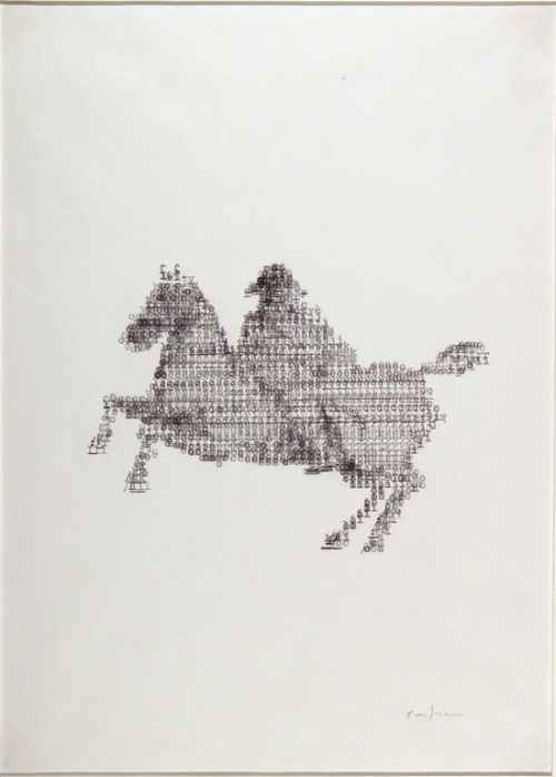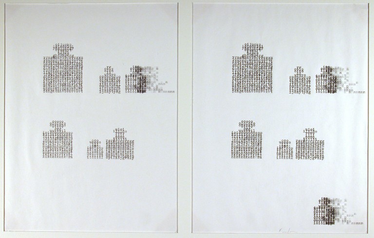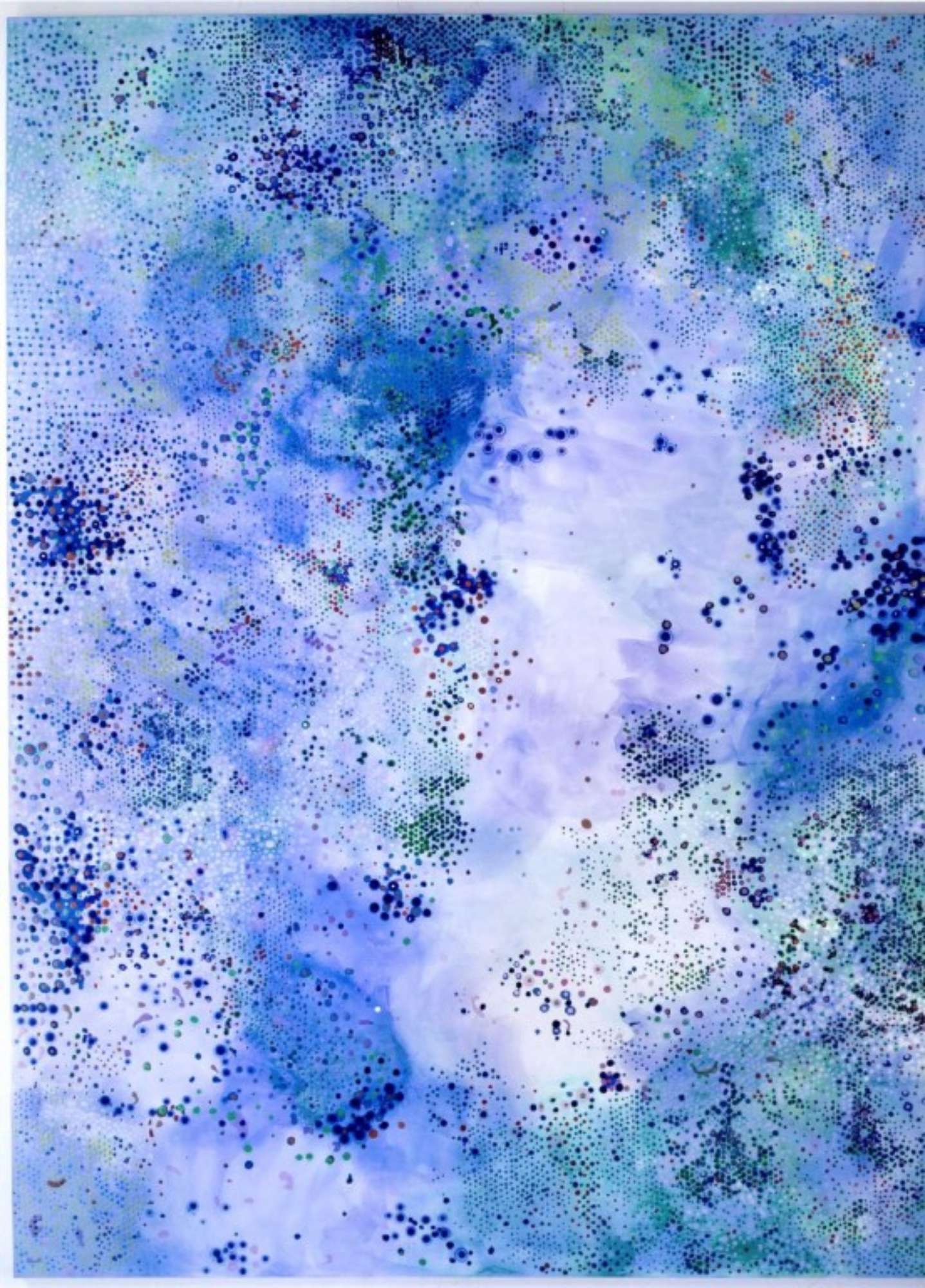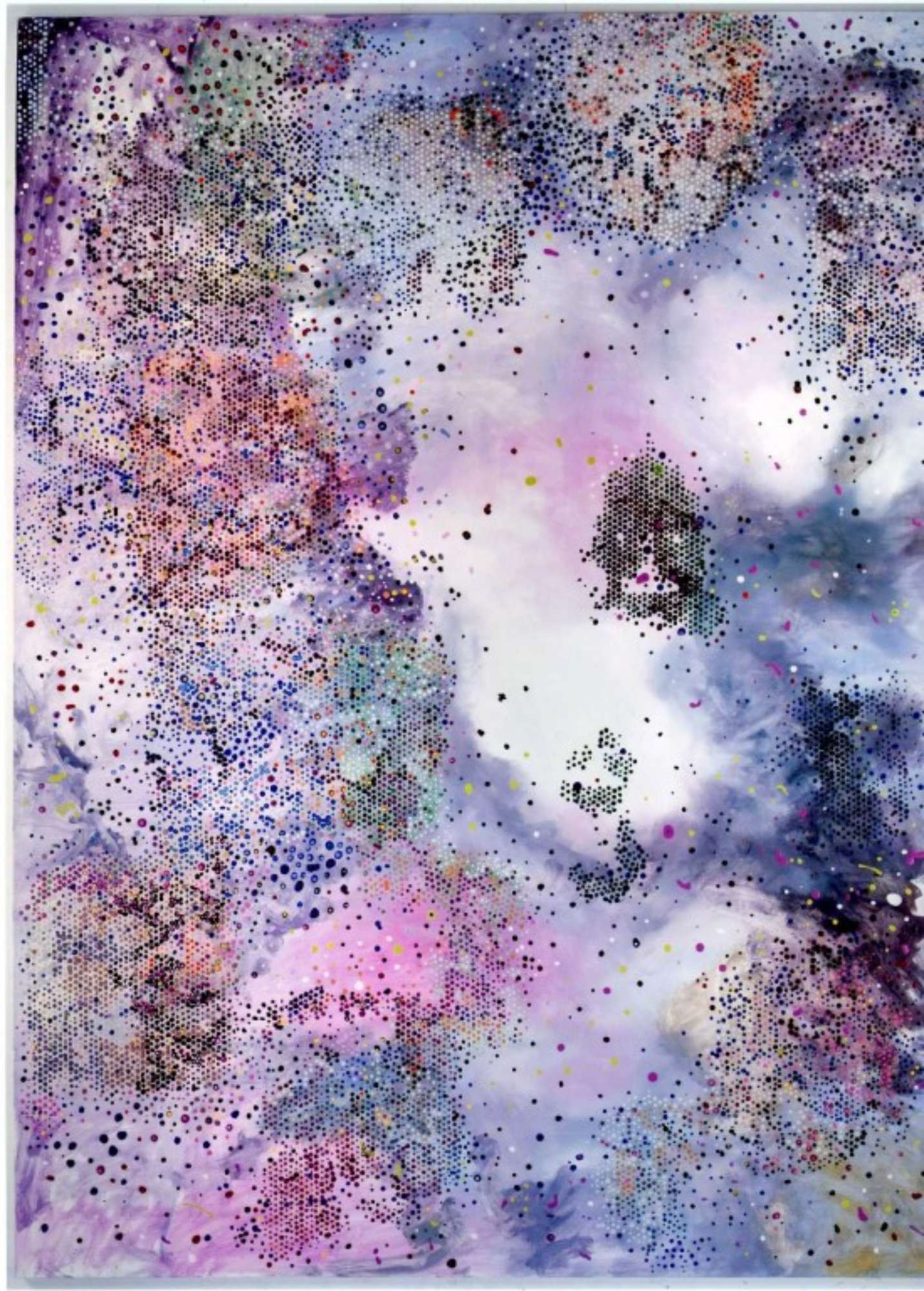 Fissando le opere per un tempo sufficientemente lungo, però, sembra che i segni formino agglomerati organici oppure, tra riferimenti più o meno volontari all’estetica digitale, paesaggi naturali o mappe urbane.