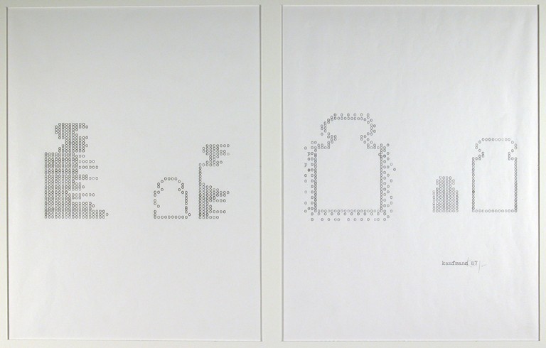 Nel 1998, invitato da Marco Meneguzzo a ripercorrere la sua attività artistica negli anni Ottanta per una mostra dedicata a quel decennio e allestita al PAC di Milano, Kaufmann ha raccontato in un testo del desiderio come forza propulsiva del suo lavoro. Se c’è un fil rouge che lega la sua predente produzione concettuale (intellettualmnete rigorosa ma appagante da un punto di vista estetico) alla sciolta e gioiosa pittura d’oggi (che nelle ambiguità percettive che produce, stimola anche conseguenti riflessioni analitiche sulle possibilità del linguaggio pittorico) è proprio la legge del desiderio, un investimento emotivo che arricchisce l’approccio intellettuale. Alimentato da riferimenti alla filosofia, alla letteratura, alla musica ed altre forme del sapere, Kaufmann procede sempre su un binario produttivo dove molteplici dicotomie si conciliano e che, prendendo a prestito una formula del critico Jorg Heiser, potrebbe essere definito “concettualismo romantico”."