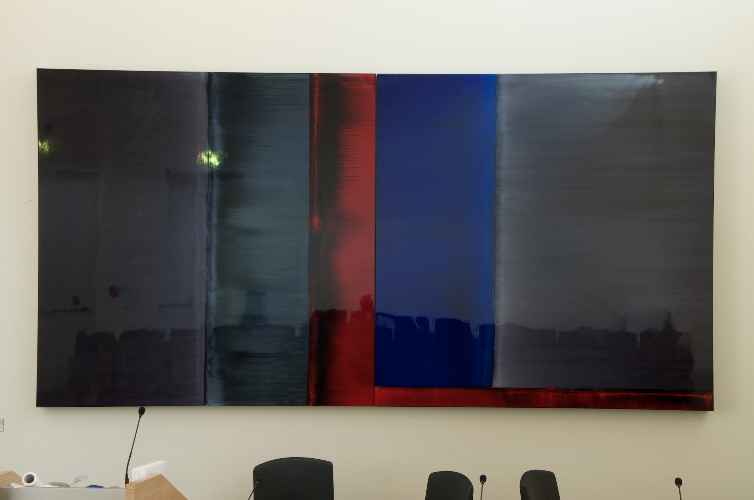 L'opera è costituita da un dittico (due tele di grosse dimensioni) caratterizzato da un forte cromatismo, rispettivamente declinato nei toni del blu e del rosa-viola.