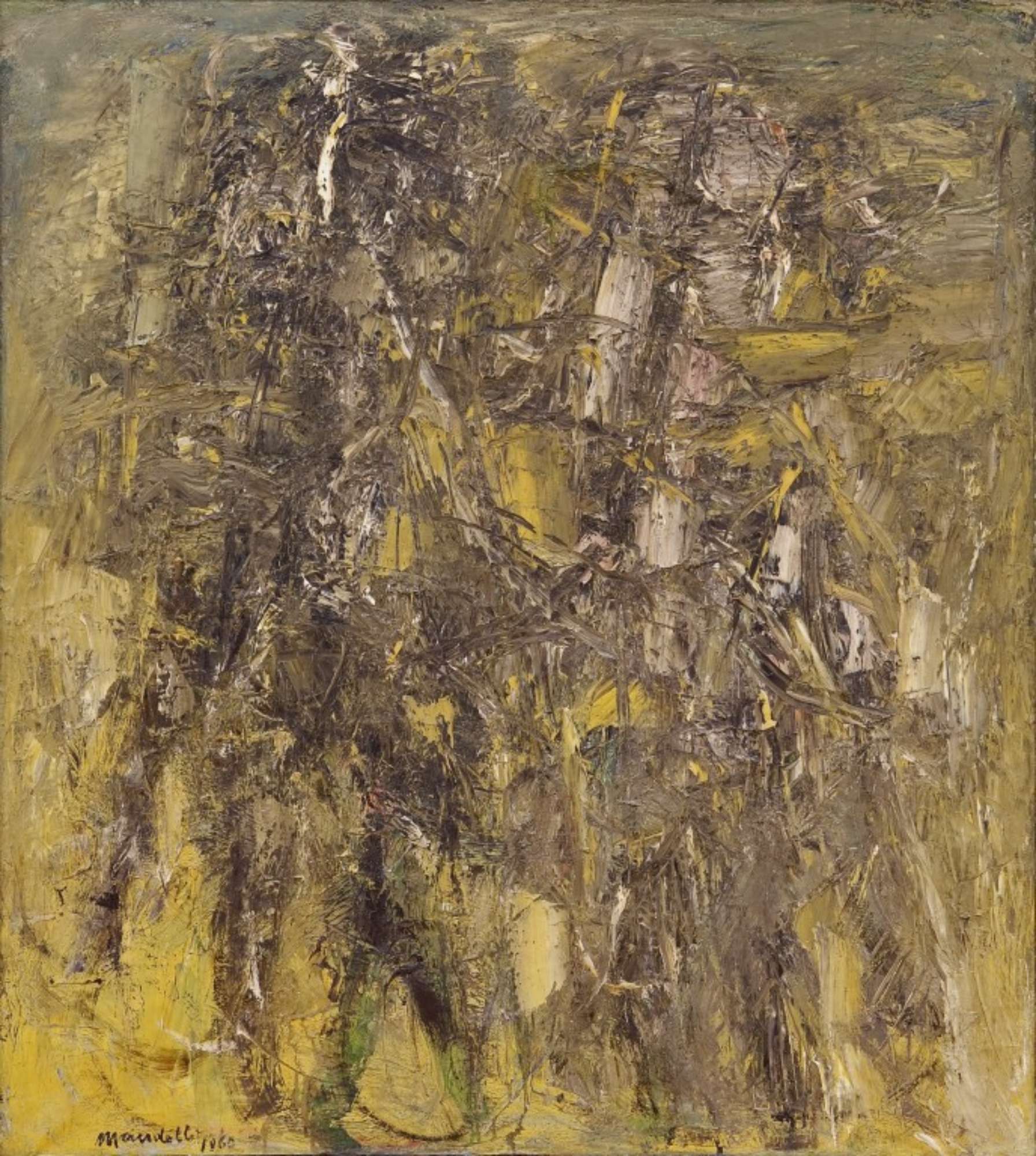 L'insegnante di disegno alle medie, Manfrini, gli consiglia di frequentare il Liceo Artistico a Bologna, dove Mandelli si trasferisce nel 1928 e conosce Giorgio Morandi, suo insegnante. Nell'estate del 1929 torna a Guastalla e trascorre le giornate lungo il Po, in bicicletta, a dipingere dal vero il "grande fiume". Dal 1932 frequenta l'Accademia di Belle Arti di Bologna dove, oltre a Morandi (titolare della cattedra di incisione), gli e' maestro Virgilio Guidi, di cui diventerà assistente e a cui succederà nel 1963, nella cattedra di pittura, restandone titolare fino al 1978. Dopo l'esordio, nel 1935, in una mostra dei Littoriali a Venezia – che gli vale il primo premio e il diritto ad esporre nella Biennale dell'anno successivo – Mandelli incontra, nel 1940, Francesco Arcangeli, che diventerà il sostenitore e l'interprete piu' appassionato della sua opera, fino alla prematura scomparsa, nel 1974, del critico bolognese. Nello stesso 1940 Mandelli era tornato a esporre alla Biennale di Venezia di cui avrebbe complessivamente partecipato a nove edizioni, con sale personali nel 1956, nel 1962 e nel 1972. La prima mostra personale e', nel 1946, alla Galleria di Cronache a Bologna, presentato da Arcangeli. Da allora molte, e di rilievo, sono state le mostre, con presentazioni e recensioni di critici autorevoli (oltre ad Arcangeli, si possono citare, tra gli altri, Carlo Volpe, Giuseppe Raimondi, Carlo Munari, Alberto Martini, Franco Russoli, Lamberto Priori, Duilio Courir, Attilio Bertolucci, A. Carlo Quintavalle, Renato Barilli, Maurizio Calvesi, Andrea Emiliani, Flavio Caroli, Marco Valsecchi, Franco Solmi, Luciano Anceschi, Pier Giovanni Castagnoli, Luigi Carluccio, Roberto Tassi, Claudio Spadoni, Adriano Baccilieri, Eugenio Riccomini, Dario Trento, Marilena Pasquali, Fabrizio D'Amico, Flaminio Gualdoni). Tra le tante esposizioni, ci piace ricordare l'antologica dedicatagli dal Comune di Reggio Emilia nel 1976 (con testi in catalogo di Barilli, Tassi e Castagnoli), quella di tempere, studi e disegni promossa dai Civici Musei nel 1988 (presentata da Roberto Tassi) e mostra antologica di Bologna del 1995, a cura di Pier Giovanni Castagnoli.