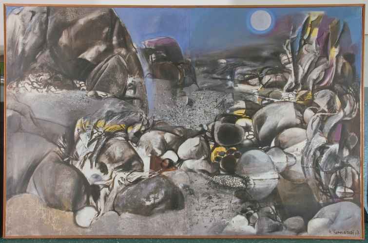 "Il nido dell'aquila" si inserisce per Cavicchioni in quel periodo della sua vita artistica in cui "la […] sensibilità ai problemi della società lo porta ad aderire attivamente al dibattito fra Realismo ed Astrazione, ma dopo un inizio attento alla lezione di Picasso e di Pignon intuisce l'impasse entro cui si dibatte il Realismo Socialista e, pur senza abbandonare il campo realista, […], abbandona la scrittura di ispirazione tardocubista" per rivolgere la sua ricerca all'Informale (Berti S., Gualdi S., Mussini M., 1998, p.16).
