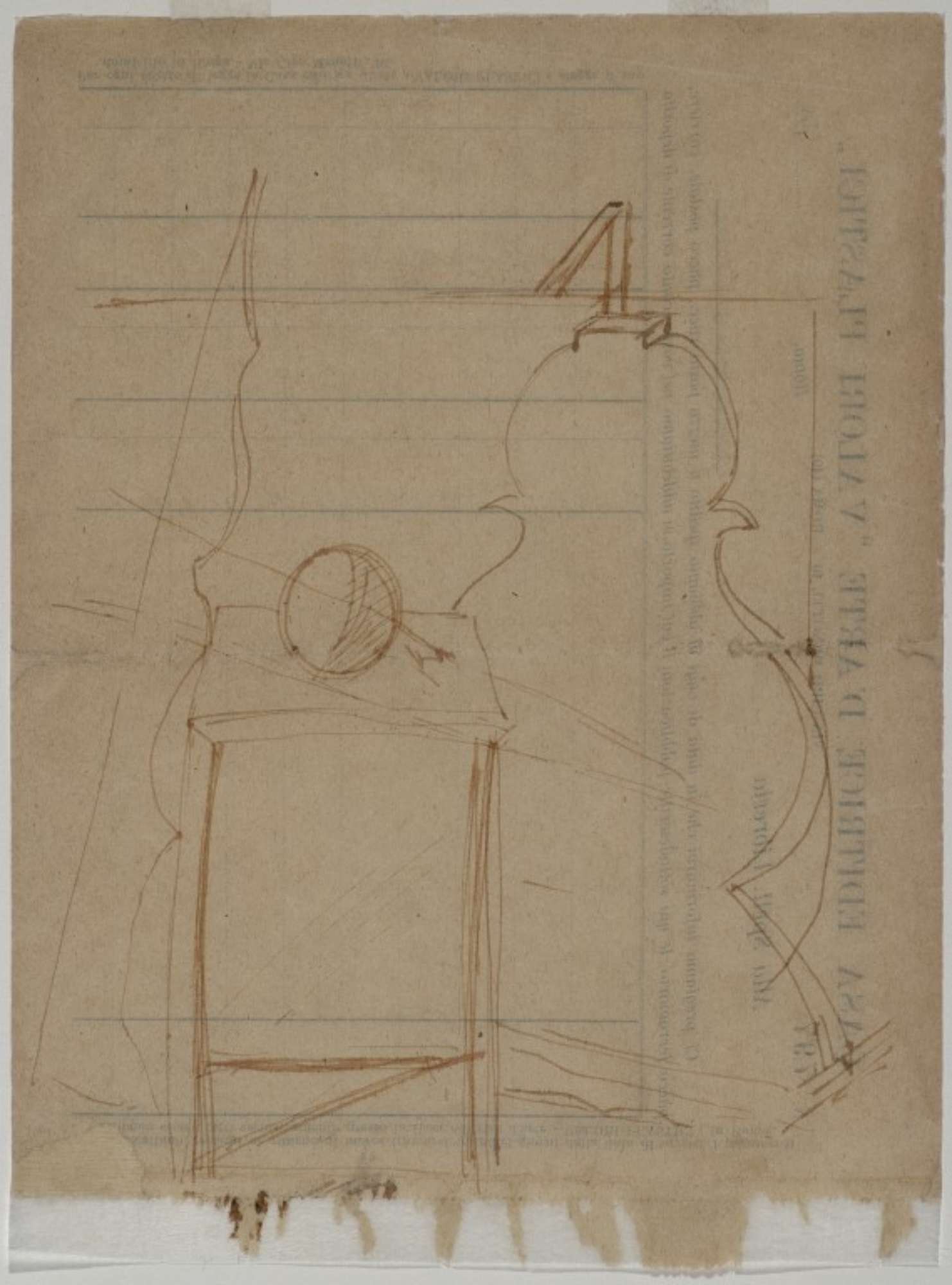 Il disegno in inchiostro rosso è tracciato sulla carta intestata delle edizioni "Valori Plastici".
