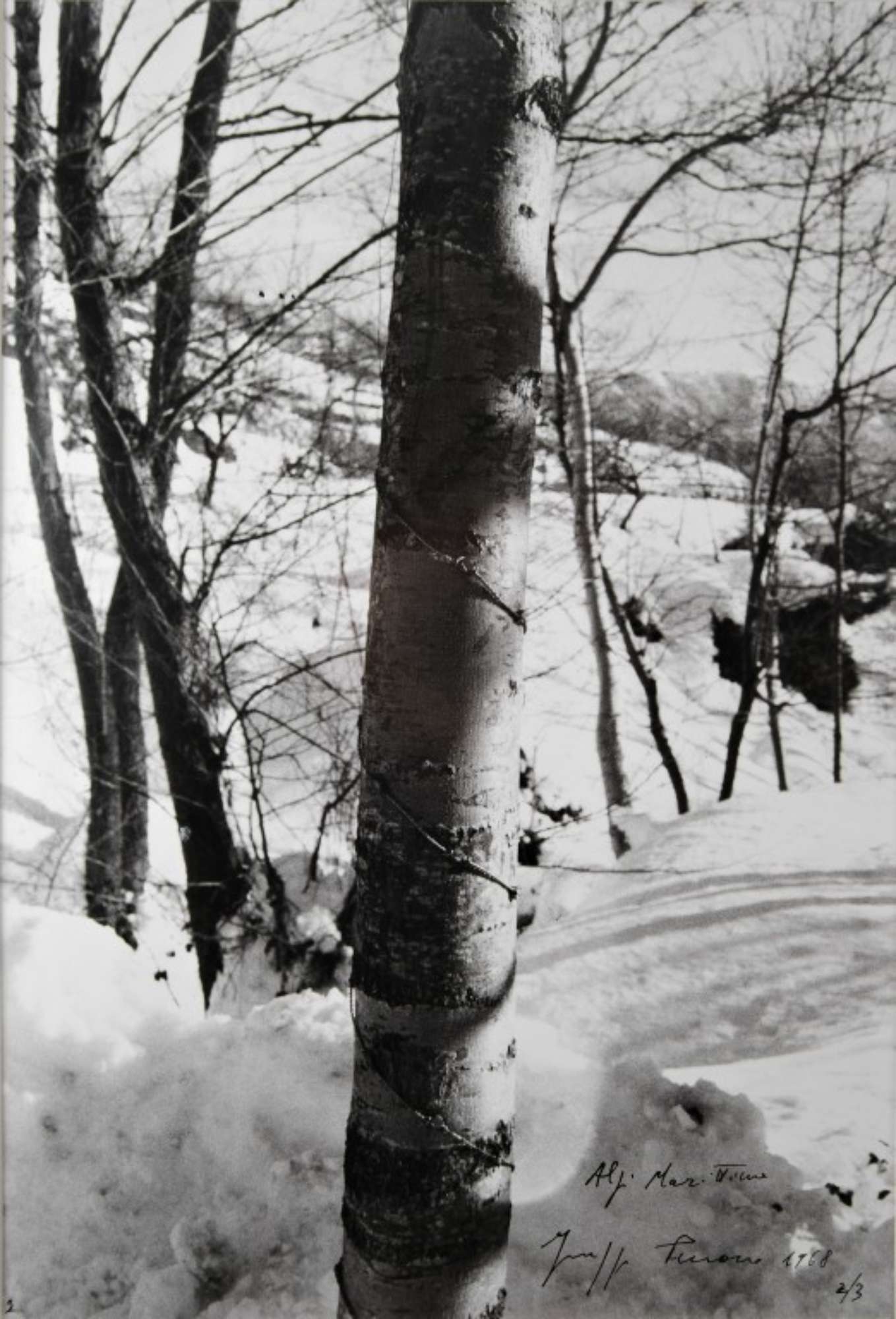 Le operazioni vengono documentate fotograficamente, come per gli alberi di "Alpi Marittime", 1968.