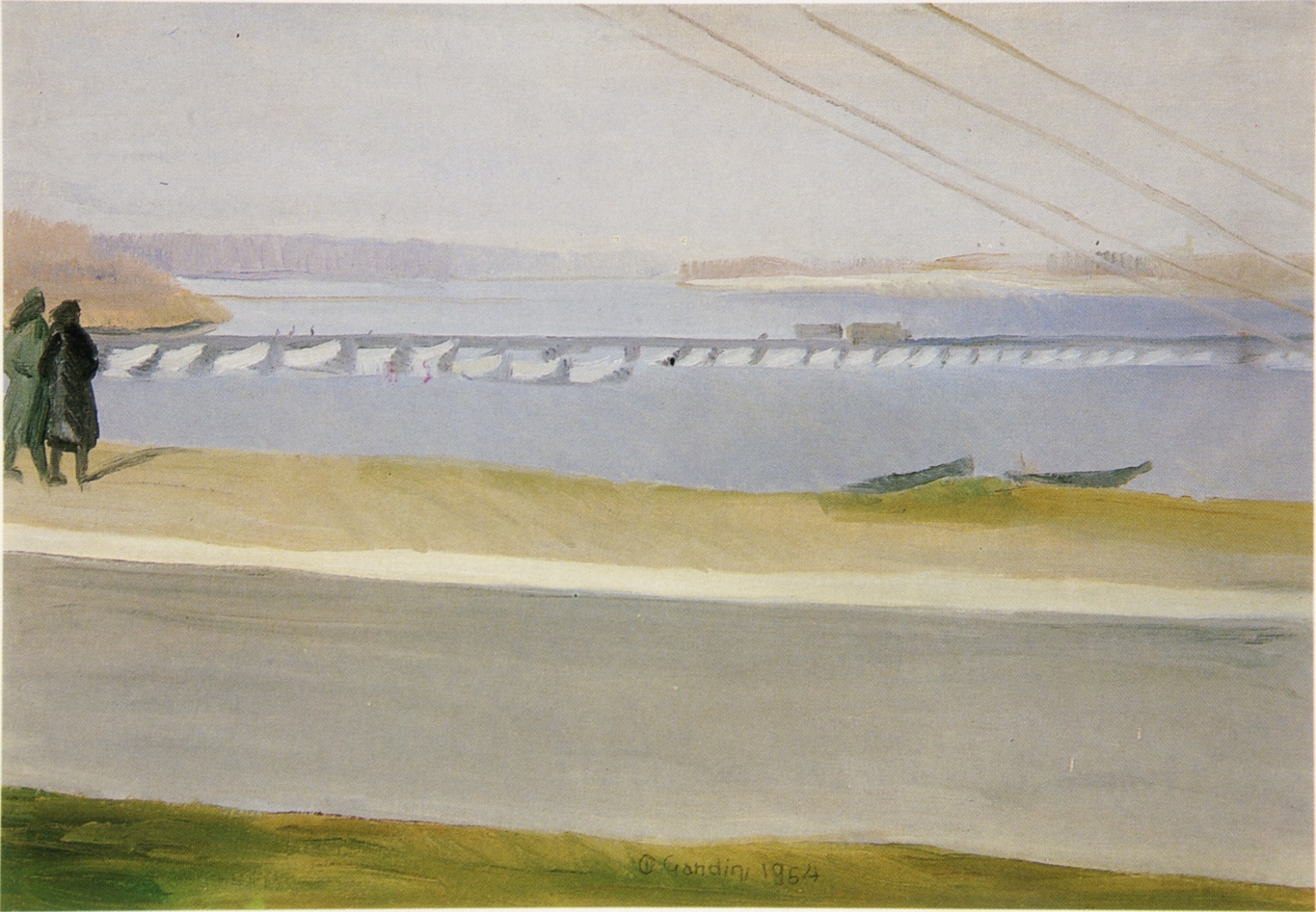 “Opera una graduale depurazione degli elementi descrittivi per affidare la sua voce ai registri di tonalità sommesse, di epidermidi sfumate verso la spazialità illesa dell’immagine. E’ un filtro lirico che si frappone tra la scontata evidenza illustrativa del paesaggio e la risonanza interiore dell’artista […] è un sentire per via di memoria, d’impronta sfumata, di sottili ombre evocative [con] la decantazione interiore la pittura di Gandini acquista una sua verità narrativa, una sua durata poetica […] ogni stagione si avvolge di una sua tonalità, che è una tonalità psicologica, un risvolto di pensieri trattenuti a tempo lungo e infine svelati nella parvenza allusiva di un colore.” (op. cit., p.16)
