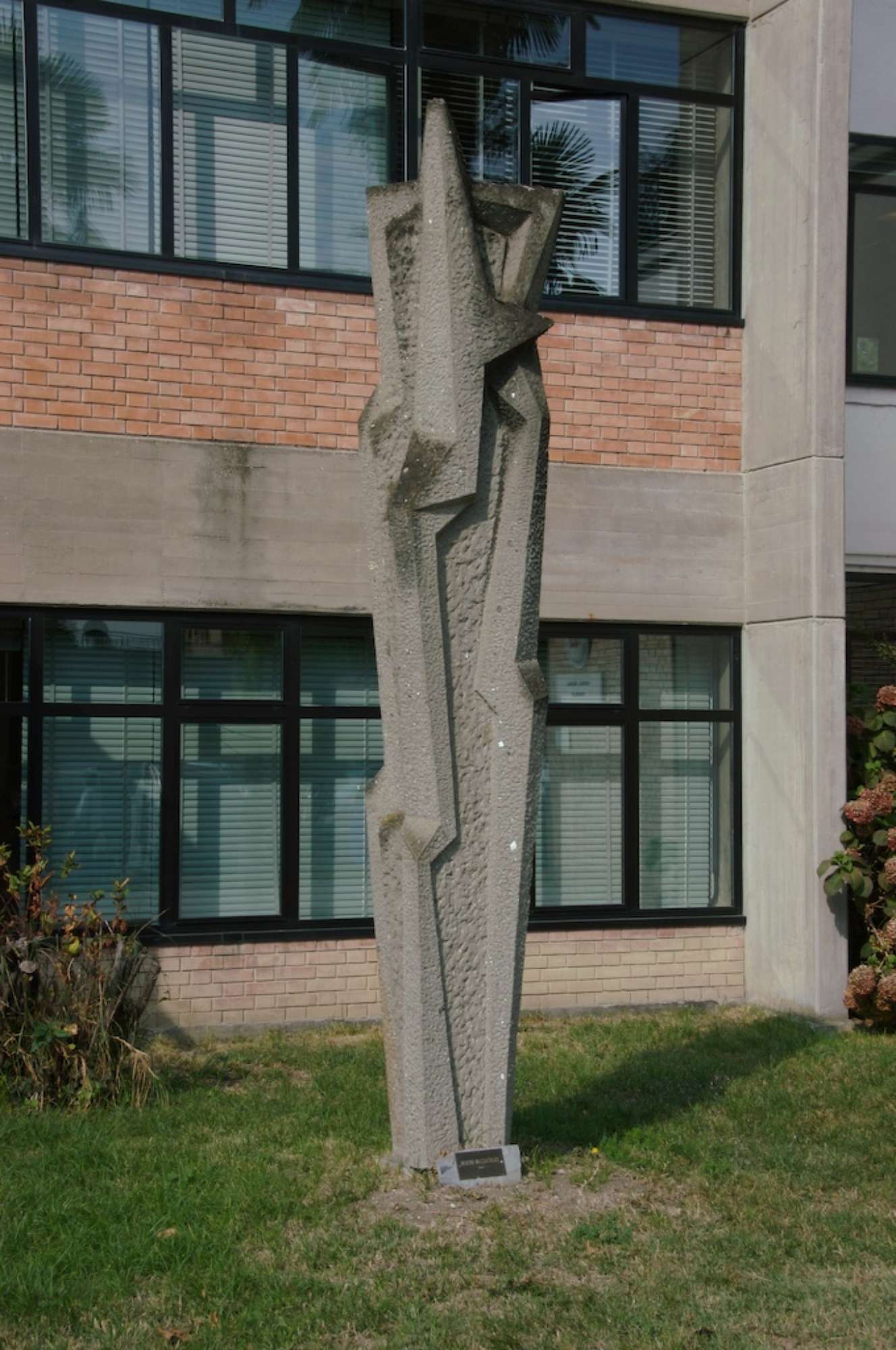 Obelisco astratto geometrico. La cornice geometrica alterna spigoli delimitanti asimmetrie formali diversamente lavorate, in superficie, da scalpello e trapano.