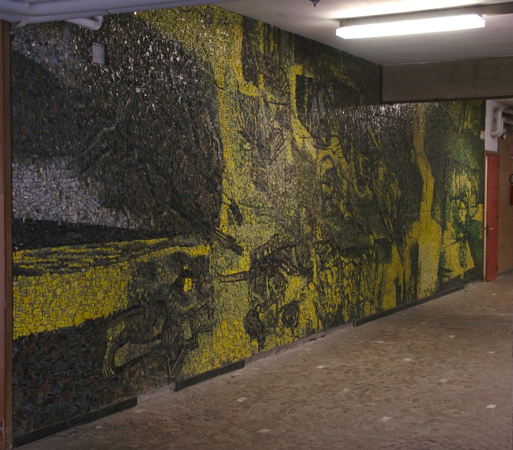 "Si tratta di una grande opera a mosaico che il Maestro portò a termine con la collaborazione dei mosaicisti della scuola di Spilimbergo. Pannelli assemblati in loco gli uni accanto agli altri: un'esplosione di colori che annuncia quelli che saranno gli orientamenti estetici futuri di Zigaina. Partito da esperienze figurative in chiave antinovecentista, membro di Corrente, protagonista del rinnovamento pittorico italiano del dopoguerra, Zigaina è pervenuto ad una pittura perlopiù aniconica che si dà come metafora visiva dei più riposti percorsi dell'intelletto umano." (Teodoro C. F., 1995, p. 67)