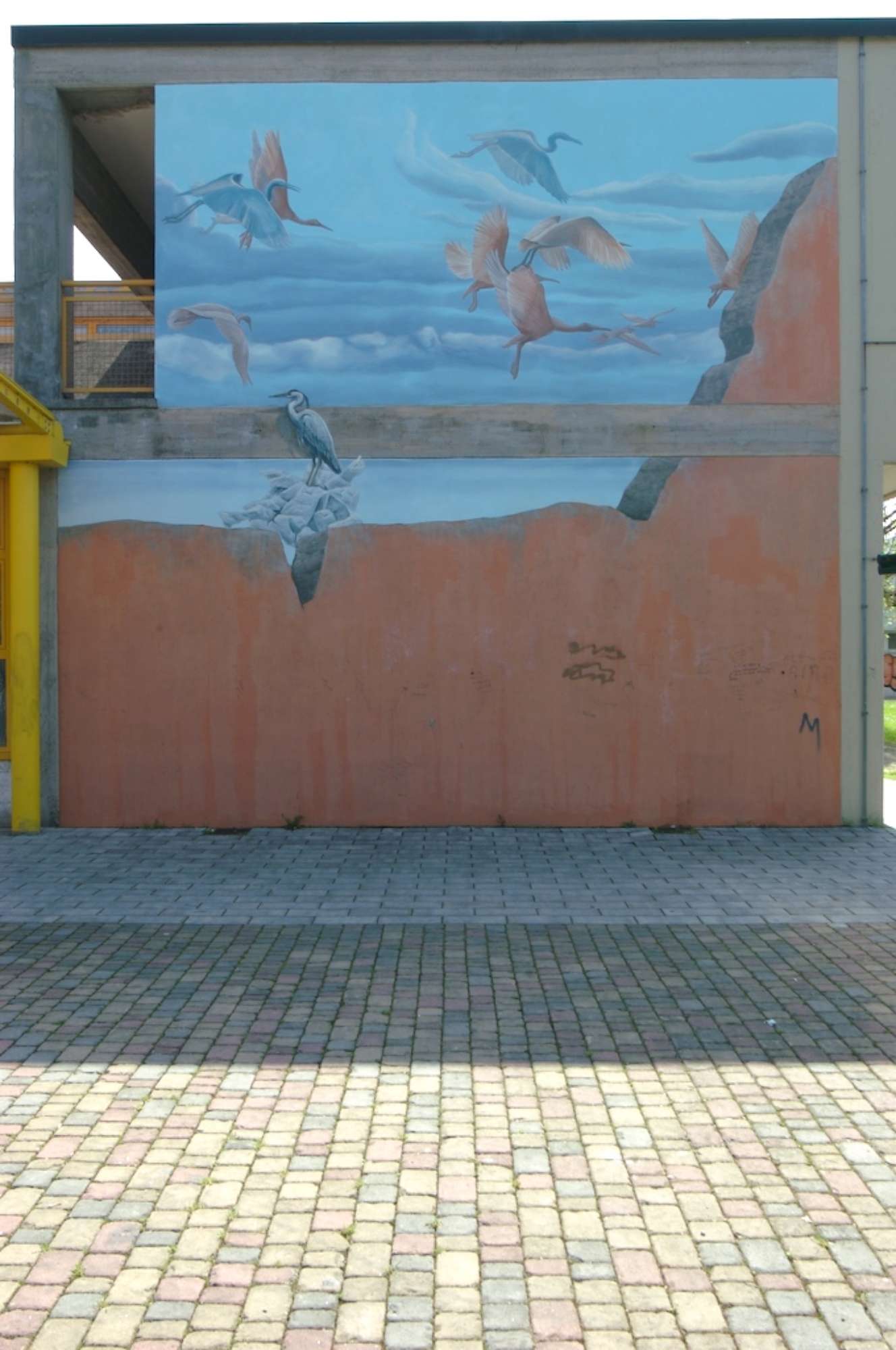 Gli uccelli prendendo il volo escono dal muro per entrare nelle rotte migratorie dei loro simili di carne e penne. Iperrealista. Ha mantenuto una luce diffusa nei dipinti, tipica dei veneti" (G. Celli in Garuti M., 1998)