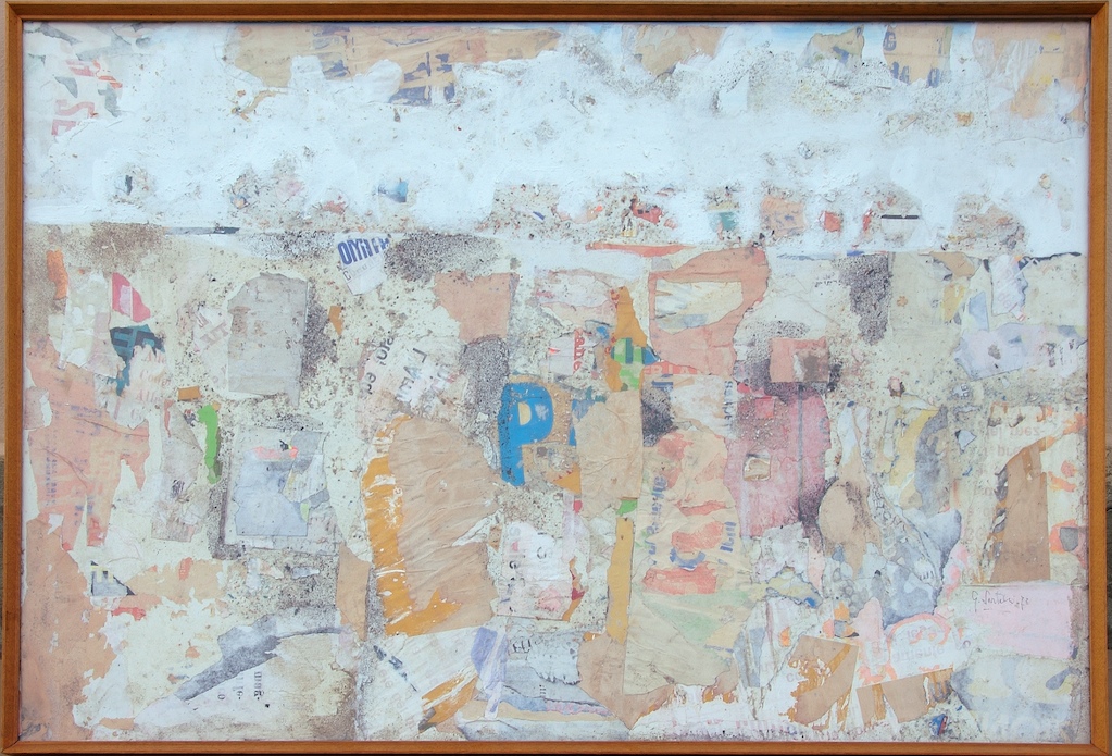 Composizione si caratterizza per accenti che si pongono tra il dada e l'informale; essa può essere confrontata con le opere del periodo di Mimmo Rotella.
