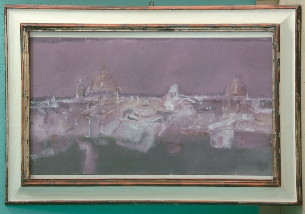 Paesaggio notturno è stato eseguito da Piraccini negli anni romani. Dipinge per oltre vent'anni i tetti di Roma, come le spiagge della sua Romagna. Trombadori dice dei suoi lavori: “Non v'è descrizione nella pittura di Piraccini , nemmeno nel senso più analogico del termine. V'è invece perenne ricerca di durata e di sonorità espressiva del tono, di valore e di “pieno-vuoto” della finzione plastica. […] Dopo tante 'Rome' illustri, da Corot a Mafai, da Ingres ai pittori romani degli anni '20 […] senza perdere un filo di quel suo colore appena intriso d'alba cerulea, interamente immerso nella brina dei filari della Bassa, interamente prosciugato sulle pomici e sugli ossi di seppia montaliani, quasi umilmente purificato sulla tavolozza e fra le polveri degli oggetti morandiani, [ecco] un pittore come Piraccini capace di cogliere di Roma un colore […]: il grigio. Il grigio vuoto, solitario, ma non meno drammatico e illustre dei bagliori di sangue scipioneschi o dei brandelli d'anima […] di Stradone. Perchè il grigio romano di Piraccini è non meno di quelli capace di schiudere la porta d'una Roma dalle dimensioni aperte, disperate slontananti”. […] I paesaggi romani di Piraccini, o le sue crete e sabbie romagnole, sono come i suoi nudi, i suoi volti […]”. (Trombadori A. in Ghinassi S., 2001 p. 84)
