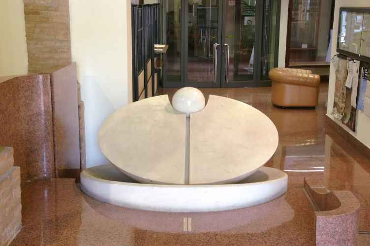 La scultura, prima classificata al concorso indetto nel 1969 dalla Camera di Commercio di Forlì, è caratterizzata da “Onde” che solcano diversamente le varie superfici del solido, a partire dallo stesso apice. “Dall’esplosione del cubo […] la geometria austera riacquista un vitalismo leggero, tutto organico, capace di far lievitare la materia: nasce così il Cubo alato, che nel dinamismo plastico barocchizzante degli anni Settanta, per tanti versi riconducibile ai “panneggi” delle sculture di Somaini, assumerà le parvenze di una Nike ellenistica.” (Cortenova G., 2002, p. 68)
