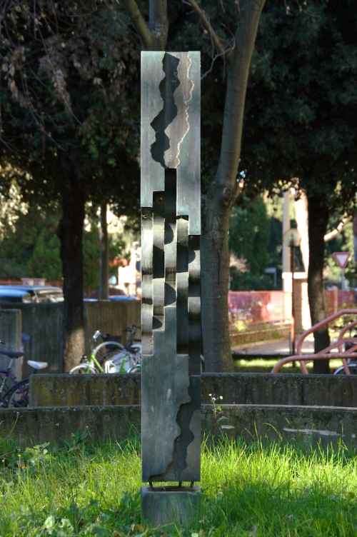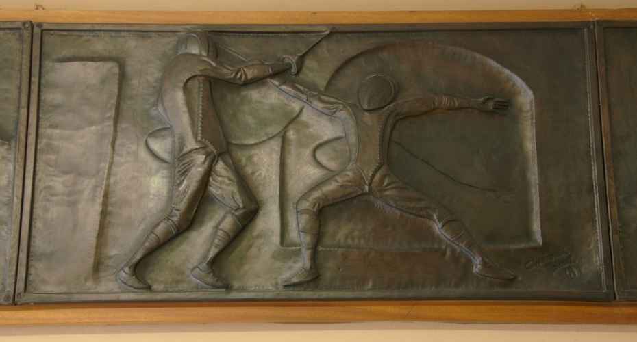 Nella scultura, le discipline della ginnastica si alternano come sinuose mummie fasciate, all’interno degli alveoli di materia lacerata, cifra tipica dell’artista, con un aggiornamento stilistico post-moderno.