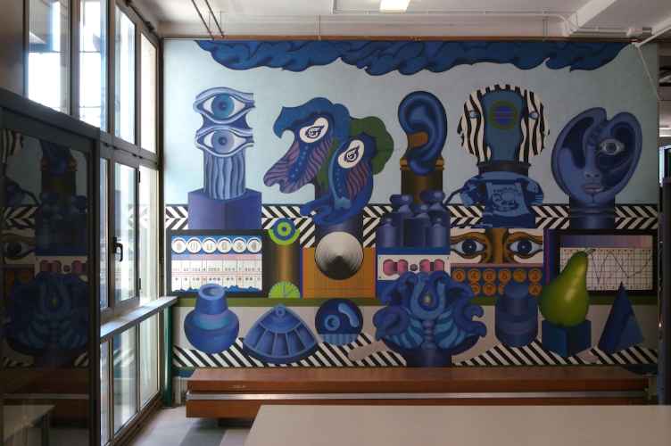 Dipinto preparatorio per l'opera realizzata su muro in Piazza Zotti nel 1971.