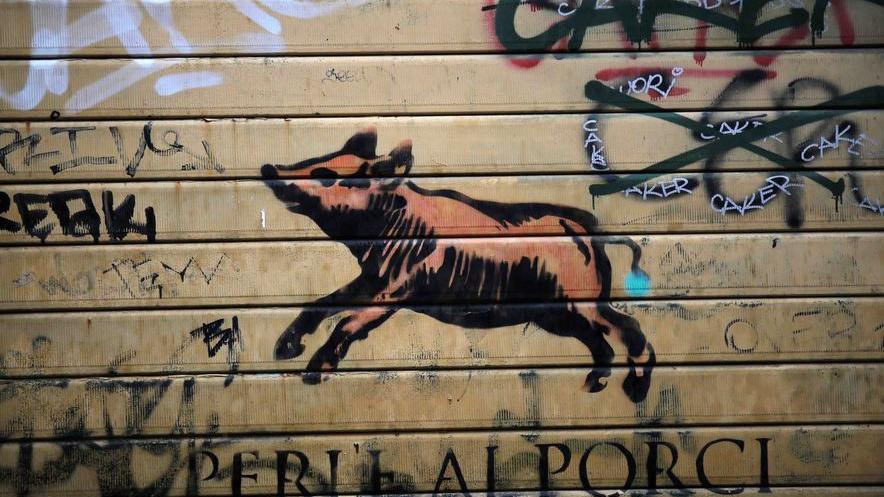 "Perle ai porci", qualche anno dopo la realizzazione, circondata da firme di writer