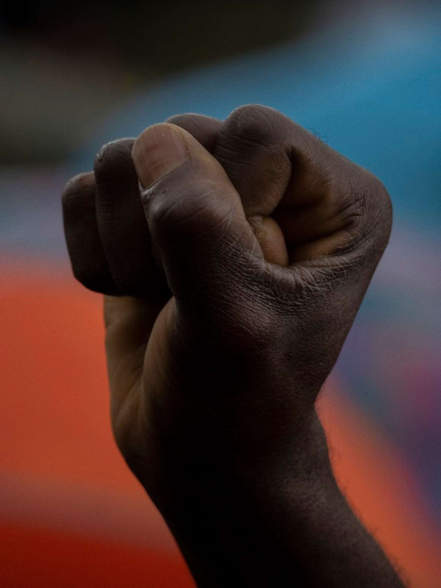Il pugno chiuso, da sempre simbolo di resistenza contro ogni forma di oppressione, emerge dallo sfondo sfocato composto dalle varie bandiere colorate sottostanti. La sua integrità, la sua fermezza, sottolineano l'importanza della solidarietà e della mobilitazione di ciascuno contro atti di violenza e oppressione. La mano, sola, chiusa in un pugno, sintetizza il senso dell'intera giornata di manifestazione: l'unione di tanti singoli individui uniti per marciare contro le brutalità della polizia americana e ogni altra forma di discriminazione.