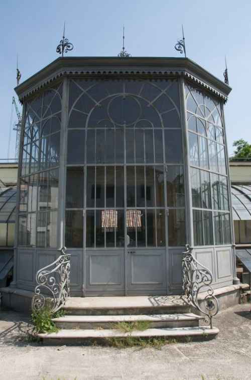 Un ingresso porticato e un balconcino ornati da colonnine e fregi caratterizzano la facciata orientale della villa, che è rivolta verso uno spazio prativo dominato da una macchia di bagolari con un’unica ampia chioma sostenuta da quattro tronchi riuniti alla base. Verso nord il prato è chiuso da una folta macchia alberata, con un secolare cedro del Libano circondato da frassini maggiori, bagolari, giovani magnolie e vecchi cefalotassi. Poco oltre si incontrano due ulteriori cedri del Libano e altri bagolari, con i tipici fusti costoluti, che crescono insieme a grandi robinie senescenti. Una macchia mista di impianto recente, con olmo campestre, acero di monte, acero americano, bagolaro, tasso e bosso, nasconde i resti in muratura della ghiacciaia, che si trovano più a est, in un angolo isolato a breve distanza dalla nuova recinzione di confine con i precedenti edifici di servizio della villa. Più spostati verso il viale centrale, invece, insieme a un vecchio esemplare di acero di monte, vegetano un’alta sequoia e un altro maestoso cedro, accompagnati da ippocastani e tassi. Oltre il viale, un’altra fitta formazione mista occupa gli spazi retrostanti la villa; ne fanno parte gruppi di sofore, filari di tassi, qualche grande farnia, vecchi tigli e ippocastani e uno slanciato abete di Douglas. Un doppio filare di tigli, con molti esemplari coetanei e qualcuno di nuovo impianto, fiancheggia il viale centrale sterrato che attraversa tutta l’area verde e conduce all’ingresso posto lungo il confine settentrionale, a pochi passi dalla stazione ferroviaria (il cancello è però sempre chiuso), a lato del quale si trova una piccola area giochi ombreggiata da cedri dell’Atlante, ippocastani e catalpe. Il vialetto che si sviluppa nel settore orientale è accompagnato da un doppio filare incompleto di olmi campestri (il portamento a candelabro è dovuto alle passate potature e i tronchi, rivestiti da muschi e licheni, sono spesso segnati da evidenti cavità). Lungo il percorso sterrato che forma l’anello esterno sul lato occidentale si alternano, invece, ippocastani, aceri di monte, aceri americani e catalpe, anche in questo caso con esemplari che mostrano i segni dell’età. Il vialetto collega la villa al pregevole edificio della vecchia serra, di recente restaurato.