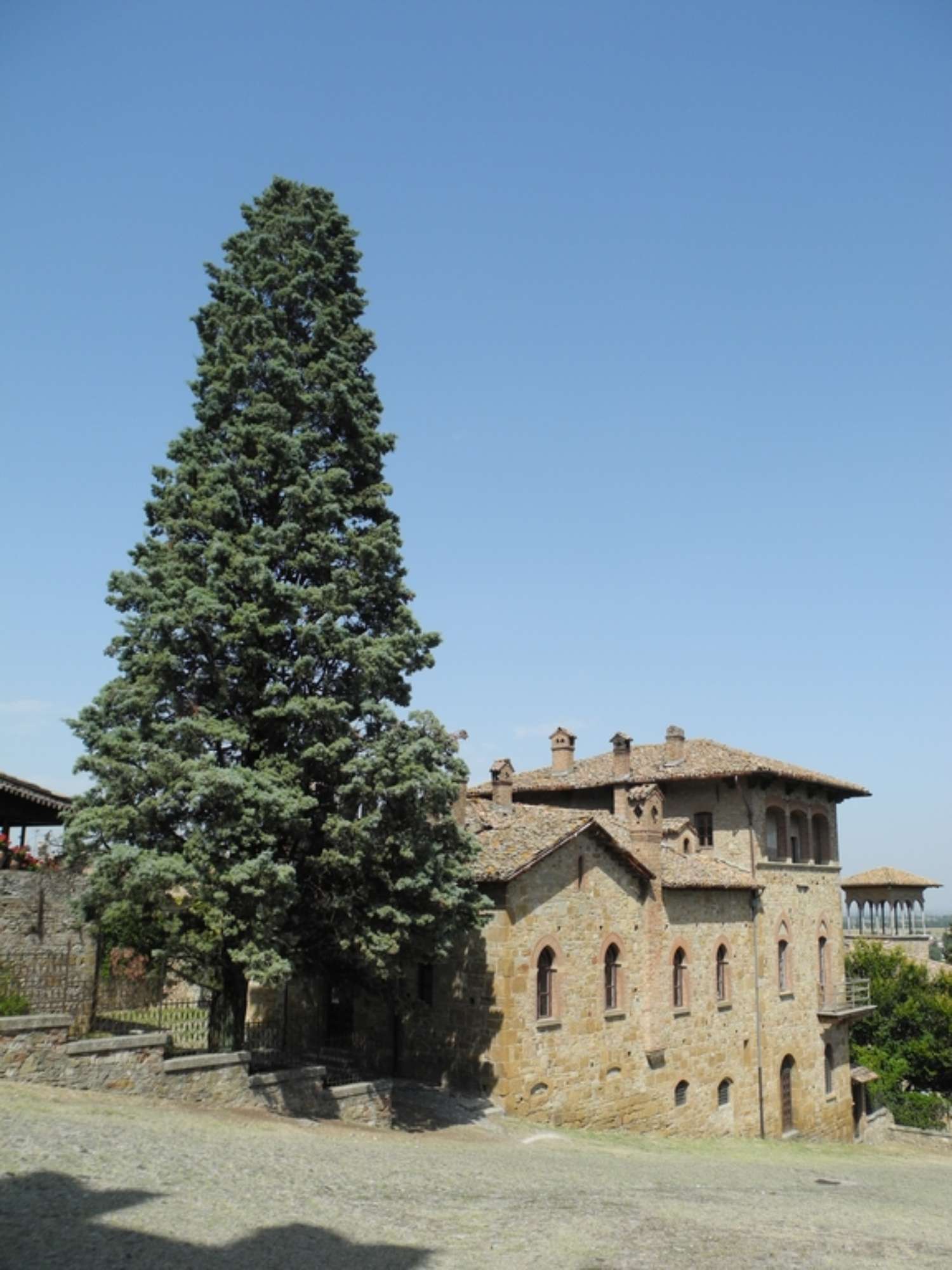 Esemplari di rilievo Tra i cipressi il maggiore (diametro 67 cm) vegeta insieme ad altri esemplari a ridosso degli edifici, mentre verso la balconata si incontrano un altro paio di cipressi di poco inferiori. Le chiome di altri due cipressi svettano poco all’esterno del giardino, in un’aiuola a lato della Collegiata, ma l’esemplare di maggiore effetto (diametro 73 cm) lo si incontra durante la salita al castello, in un angolo suggestivo allestito di fronte all’antico Palazzo della Pretura, divenuto dal 1995 sede di mostre d’arte ed eventi culturali.