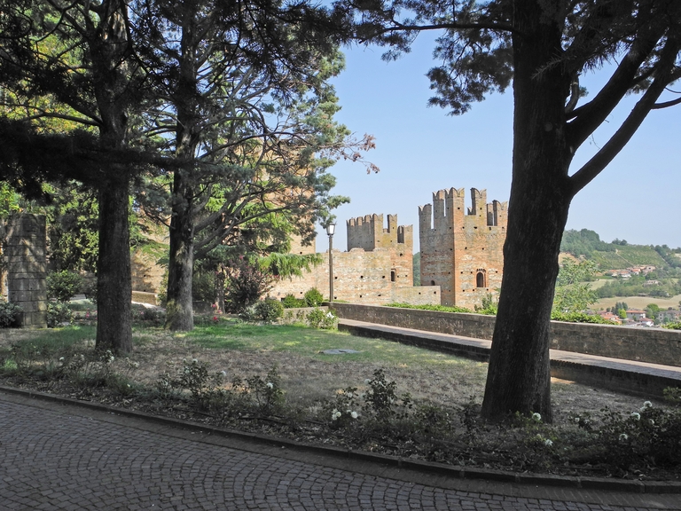 Il gradevole angolo di verde, noto in passato come Giardini della Rocca, impreziosisce un piccolo pianoro che fiancheggia l’imponente castello e dal quale si gode un ampio panorama sulla valle del torrente Arda e la catena appenninica. Il giardino, che conserva alcune grandi alberature, si trova a pochi passi dalla bella piazza sulla quale si affacciano l’antica chiesa di Santa Maria, o Collegiata, e il medievale Palazzo del Podestà, l’odierna sede municipale. Oltre a inserirsi in modo armonioso nel borgo storico, il giardino è parte di un più articolato sistema di verde che accompagna la salita al colle sul quale si erge la splendida Rocca Viscontea, oggi di proprietà comunale.