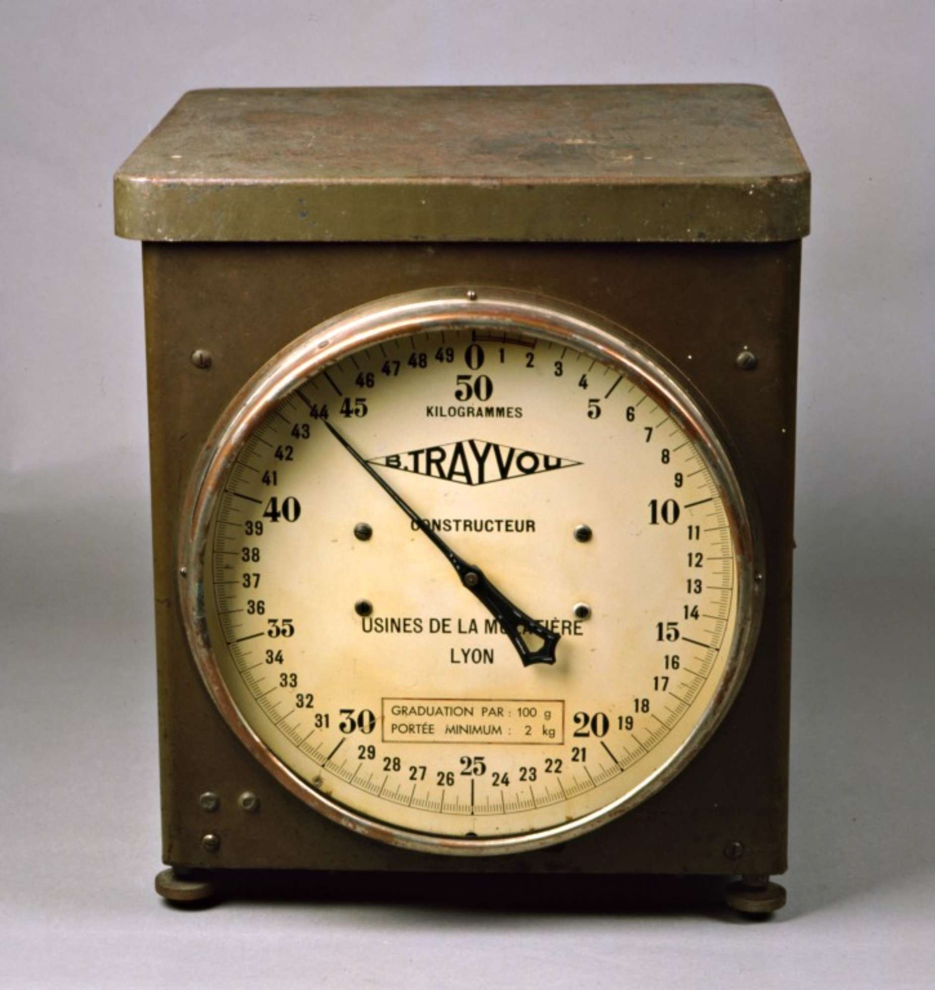 La ditta Trayvou rappresenta la successione della famosa ditta di bilance Béranger et Companie di Lione. Nel 1857 dopo il ritiro dall'attività del capostipite Joseph Béranger, le redini aziendali vennero prese dal genero sig. Catenot che trasferì l'azienda nella vicina La Mulatière, un piccolo paese ad alta vocazione siderurgica. La fabbrica è all'avanguardia per i tempi, i collegamenti interni e lo spostamento delle gru avviene tramite rotaia, vi è impiantato un altoforno, dei magli, laboratori di ebanisteria e lavorazione dei marmi. Catenot però morì nel 1863. La vedova Catenot-Béranger sposò nel 1866 in seconde nozze Benoît Trayvou. Nel 1886 l'azienda venne distrutta da un incendio ma nel giro di pochi anni venne ricostruita. Tayvou morì nel 1891. L'azienda continuò a produrre fino al 1945 quando venne assorbita dal gruppo finanziario Empain-Schneider e nel 1986 era ancora in attività.
