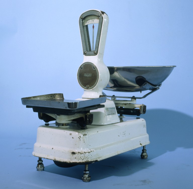 La bilancia automatica, nella teoria, era stata ideata da Leonardo che però non costruì strumenti simili. Le uniche bilance automatiche in uso fino alla fine del XIX secolo furono le bilance a pendolo e quelle a molla, che davano una lettura automatica del peso. La bilancia automatica Dujour, costruita dalla ditta francese Trayvou nel 1879, venne ammessa in Italia nel 1892 ma rimase pressochè sconosciuta: maggior fortuna ebbe invece la bilancia Chronos a carico costante ammessa nel 1897. Nel 1911 venne ammessa al commercio una bilancia ottenuta dalla combinazione fra una bilancia composta a sospensione inferiore e due dinamometri disposti verticalmente. Solo nel 1915 viene introdotta la bilancia Toledo a masse pendolari che eliminano l'uso delle molle. La prima bilancia Berkel ad essere ammessa alla verificazione in Italia ha il giogo pendolare compensato e risale al 1923. Le bilance automatiche hanno dapprima due piatti con pesi per aumento di portata poi un unico piatto e masse addizionali interne; il quadrante da forma di settore circolare (ventaglio) diventa circolare; da 1 giro di lancetta si passa a più giri di lancetta. William e Thomas Avery erano parenti di un costruttore di bilance, certo Joseph Balden, e ne ereditarono l'attività alla sua morte, avvenuta nel 1813. L'azienda fu conosciuta fin dal 1818 come W & T Avery. Dal 1885 erano attivi tre stabilimenti: Atlas Work nel West Bronwich, Mill Lane a Birmingham e Moat Lane sempre a Birmingham. L'azienda divenne una compagnia a responsabilità limitata (limited liability) nel 1894 e si spostò nella famoso Soho Foundry nel 1897. A poco a poco l'azienda assorbì altre ditte di bilance, spesso mantenendone il nome originale. Nel 1979 la Avery venne assorbita dalla General Electric Company che nel 1993 acquistò anche la Berkel, introducendo il nome di Avery Berkel. Nel 2000 l'attività fu acquisita dalla compagnia americana Weigh-Tronix, proprietaria anche della Salter ed è conosciuta come Avery Weigh-Tronix. Il punzone di verificazione prima presente su questa bilancia, di Giorgio VI, sovrano inglese fra il 1936 e il 1952, reca il numero 316 corrispondente al distretto di York County, West Riding cioè la parte ovest di York di cui fa parte anche Sheffield, da cui viene il distributore.