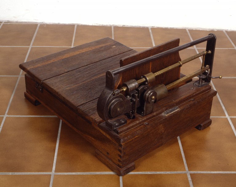 La prima stadera a bilico a noi nota è quella installata alla Birmingham Workhouse da John Wyatt nel 1741 ma solo a partire dal XIX secolo questo tipo di strumenti incominciò ad avere una grande diffusione. In Italia la bascula divenne un indispensabile strumento di lavoro a partire dalla seconda metà del XIX secolo sia in ambito rurale che per scopi commerciali, per i quali vennero costruite delle piccole bascule che potevano comodamente trovare posto sui banchi di vendita. La bascula in oggetto è una pesapersone di robusta fattura, realizzata probabilmente per l'esercito che pesava le giovani reclute.