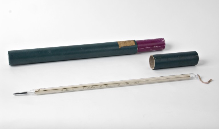 La data sull'etichetta fa riferimento ad una fattura di Salleron citata da S. Zavaglia in una sua lettera del 10 giugno 1868, relativa ad una fornitura di strumenti tra cui alcuni termometri. In tale lettera Zavaglia richiese un cambio di termometri scala -30 +45 da 4 franchi con termometri scala 0 +100.