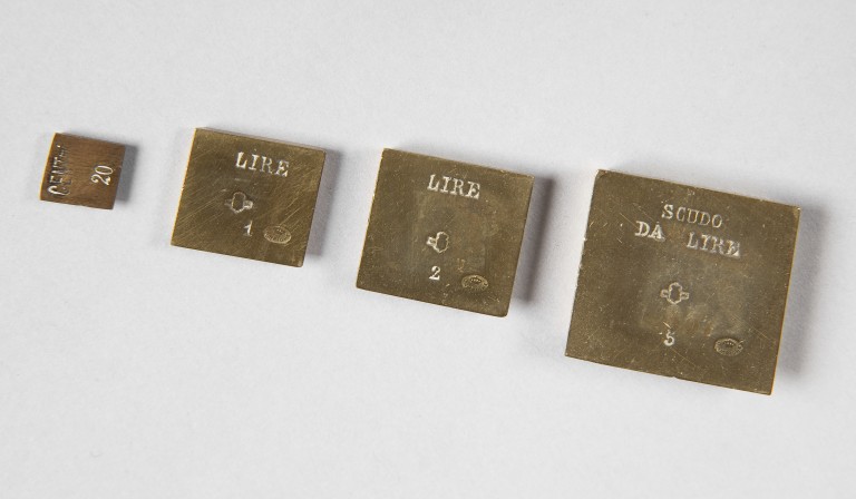 Posizione: sulla faccia superiore dei pesi da 5, 2 e 1 lira