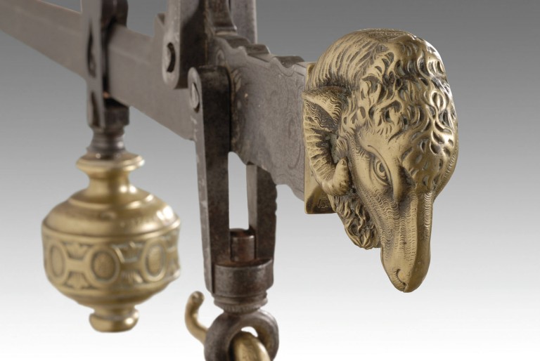 La stadera è di pregevolissima fattura, sia nelle fusioni in ottone dei mostri fantastici, della protome di ariete, del ritratto di Vittorio Emanuele II che nelle incisioni a bulino sul piatto, sul braccio minore e sul corrente del romano.