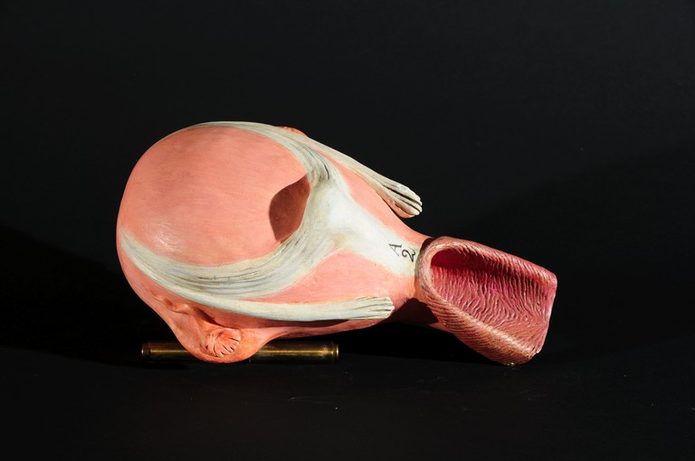 Utero gravido di due mesi con bocca dell'utero e della vagina allargate, quanto permette il baccinetto.