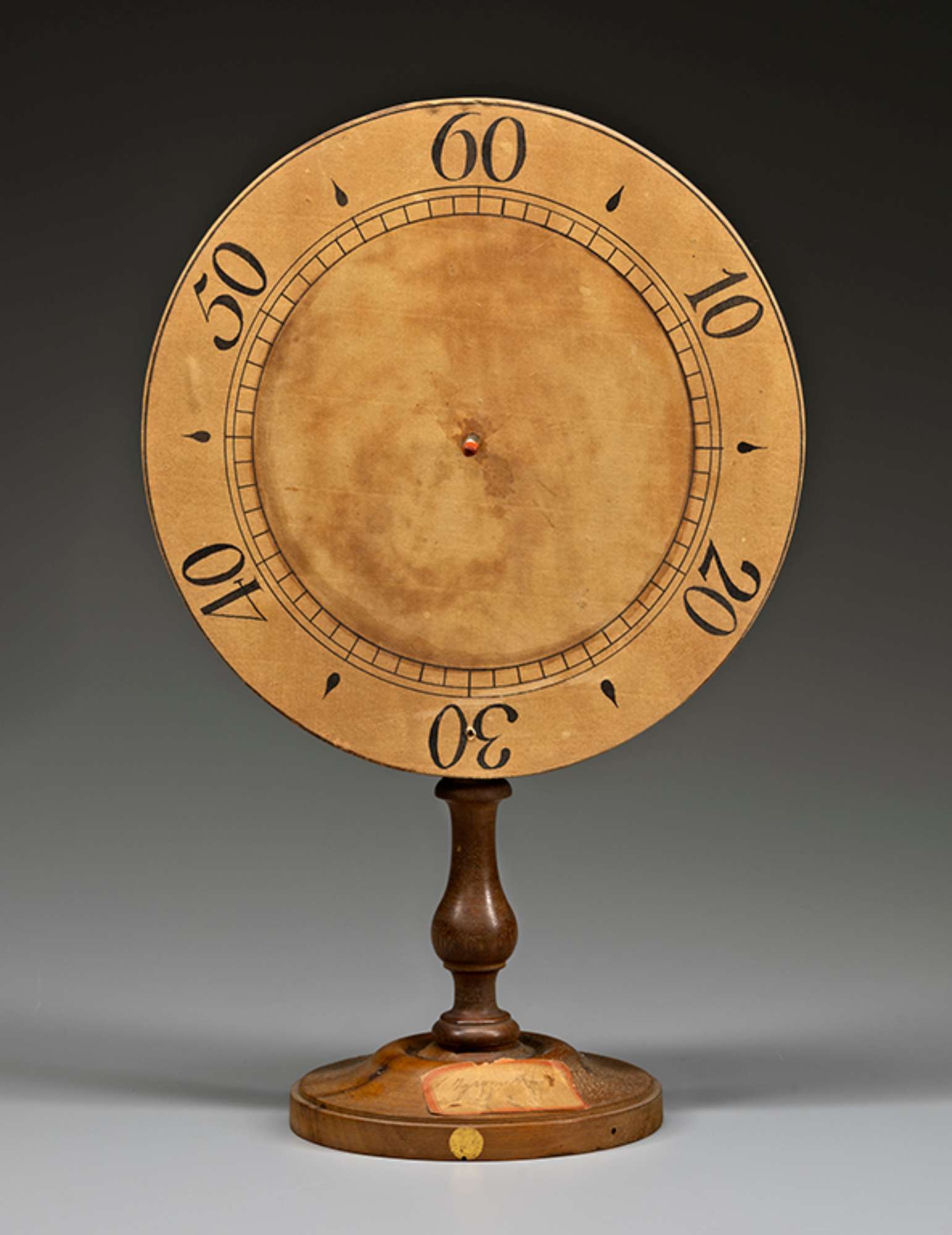 Una colonnina montata su di una base sostiene un disco verticale recante una scala divisa in 60 parti. Al centro del disco era imperniata una lancetta leggera mossa (non è chiaro come) da un elemento igroscopico (barba d'avena,? Capelli?) Queste parti sono mancanti.