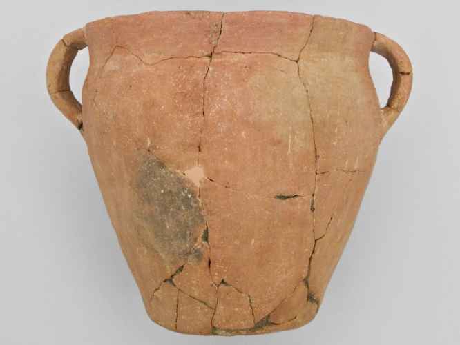 Anforetta ad orlo svasato, spalla accennata, corpo troncoconico, fondo piatto e un'ansa (conservata) verticale a nastro impostata dall'orlo alla spalla. Decorazione incisa con profonde e larghe solcature in corrispondenza della spalla.