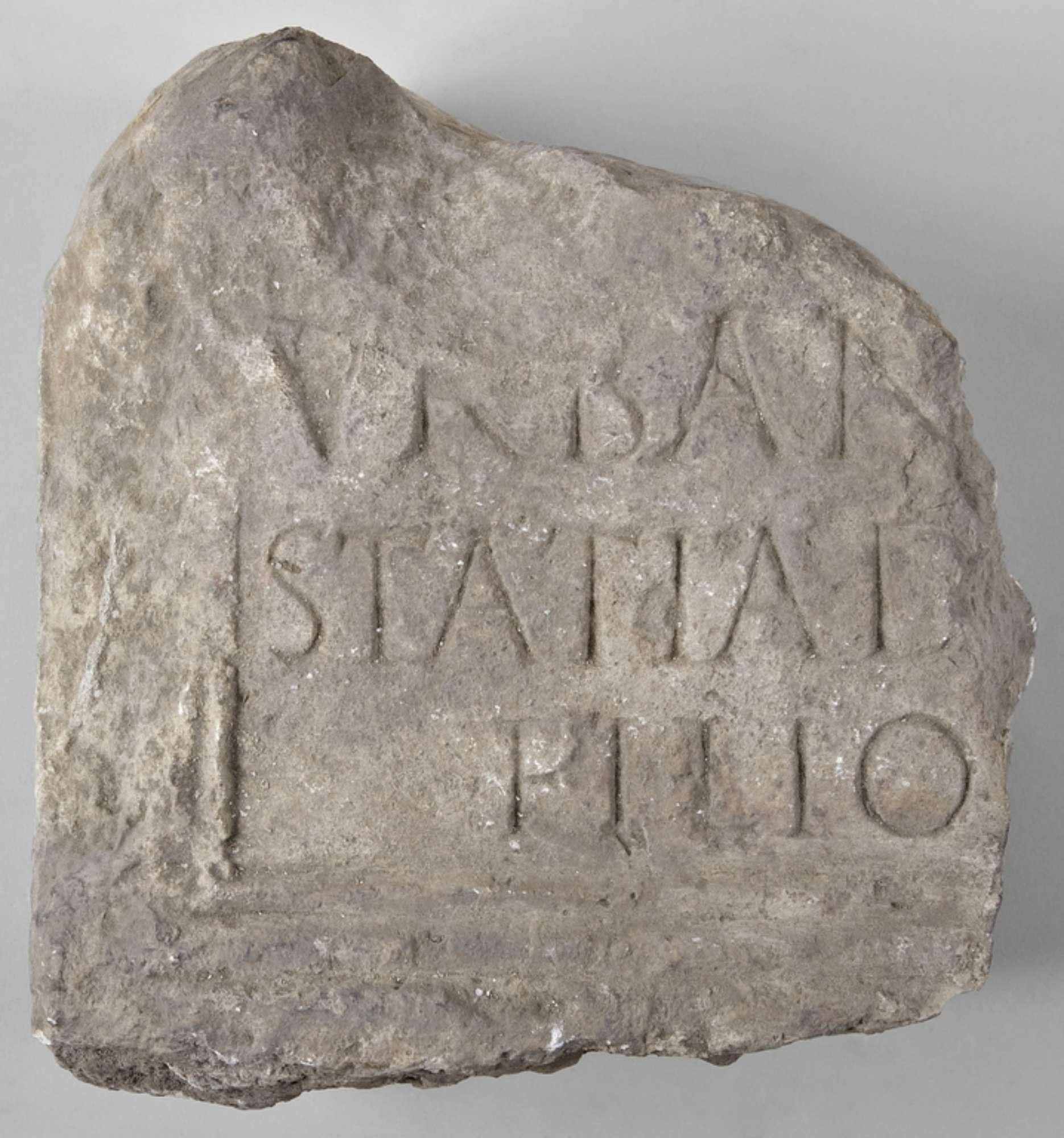 Tabella marmorea, in origine contornata da cornice a doppia gola. Restano solo le ultime tre linee dell’iscrizione