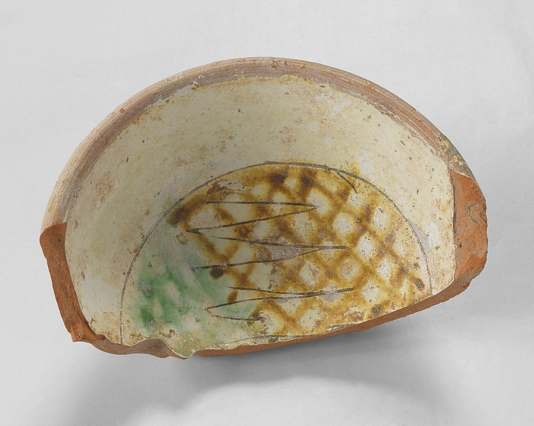 Frammento di ciotola in ceramica graffita con stemma a sega dei Bentivoglio.