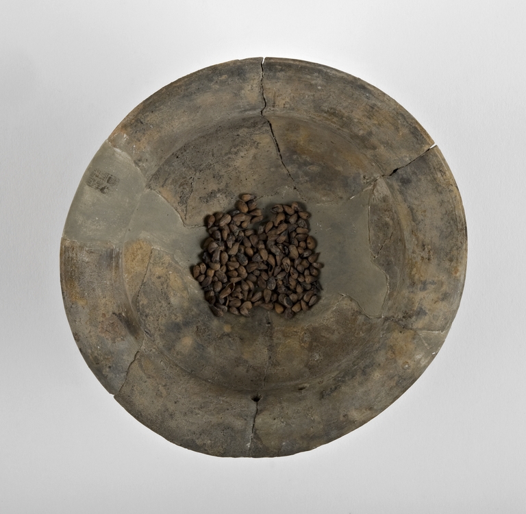 L'oggetto appartiene al corredo funerario della tomba 24 rinvenuta da G.V. Gentili nel 1969 nella necropoli Moroni di Verucchio. Si tratta di una tomba a pozzetto circolare molto profondo, in cui i resti della defunta erano collocati dentro ad un ossuario interamente avvolto in un vestito di lana deposto sopra un cesto di vimini e circondato da dieci paletti in legno conficcati verticalmente nel riempimento del pozzetto. Il corredo è molto ricco e comprende ornamenti personali, strumenti da filatura e tessitura ed un ricco set da banchetto con scodelle e tazze, alcune delle quali contenevano offerte di cibo.