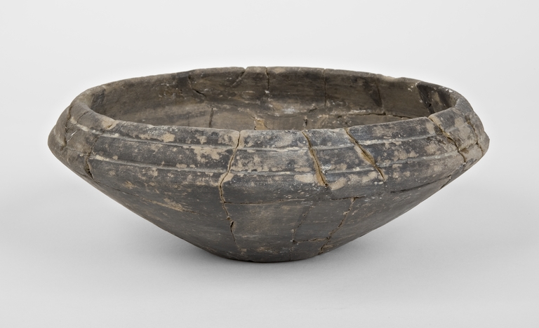 L'oggetto appartiene al corredo funerario della tomba 24 rinvenuta da G.V. Gentili nel 1969 nella necropoli Moroni di Verucchio. Si tratta di una tomba a pozzetto circolare molto profondo, in cui i resti della defunta erano collocati dentro ad un ossuario interamente avvolto in un vestito di lana deposto sopra un cesto di vimini e circondato da dieci paletti in legno conficcati verticalmente nel riempimento del pozzetto. Il corredo è molto ricco e comprende ornamenti personali, strumenti da filatura e tessitura ed un ricco set da banchetto con scodelle e tazze, alcune delle quali contenevano offerte di cibo.