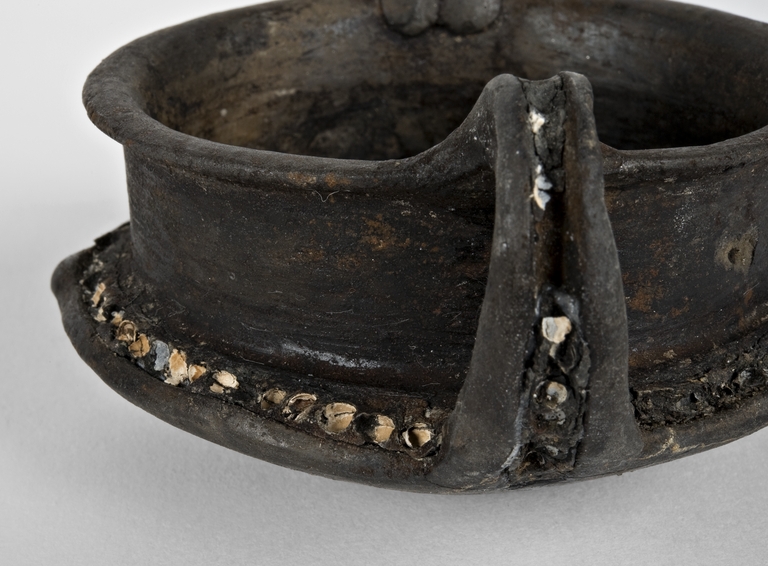 L'oggetto appartiene al corredo funerario della tomba 24 rinvenuta da G.V. Gentili nel 1969 nella necropoli Moroni di Verucchio. Si tratta di una tomba a pozzetto circolare molto profondo, in cui i resti della defunta erano collocati dentro ad un ossuario interamente avvolto in un vestito di lana deposto sopra un cesto di vimini e circondato da dieci paletti in legno conficcati verticalmente nel riempimento del pozzetto. Il corredo è molto ricco e comprende ornamenti personali, strumenti da filatura e tessitura ed un ricco set da banchetto con scodelle e tazze, alcune delle quali contenevano offerte di cibo.