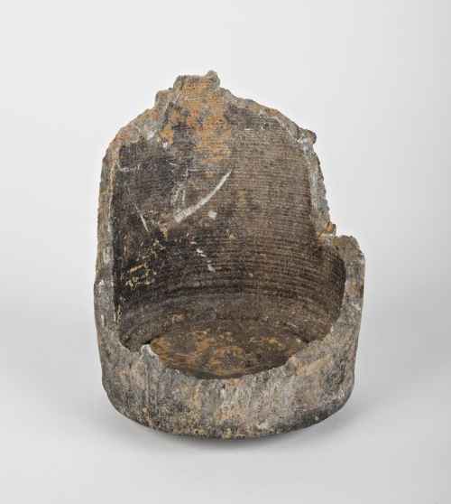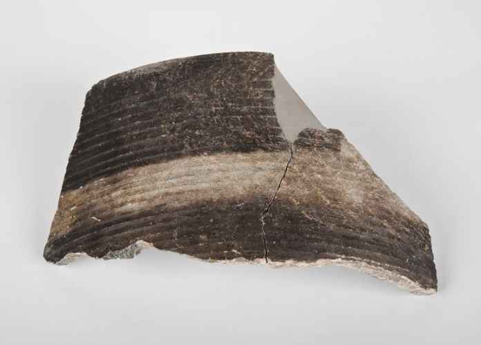Frammento di piede a disco di bicchiere ovoide con attacco di parete svasata. Argilla tenera di colore arancio (Modena tipo C)