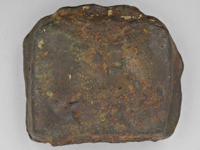 Barra, lingotto di bronzo a sezione cuneiforme; si tratta della punta del lingotto.