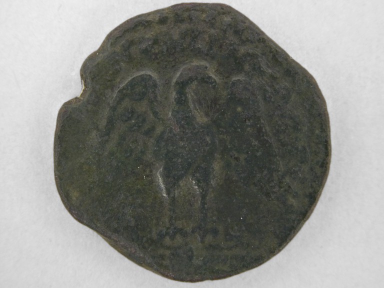 Moneta greca di Agrigento in bronzo. Sul diritto: testa di Zeus con corona di alloro a destra. Sul rovescio: aquila frontale su fulmine, con ali spiegate e testa a destra.